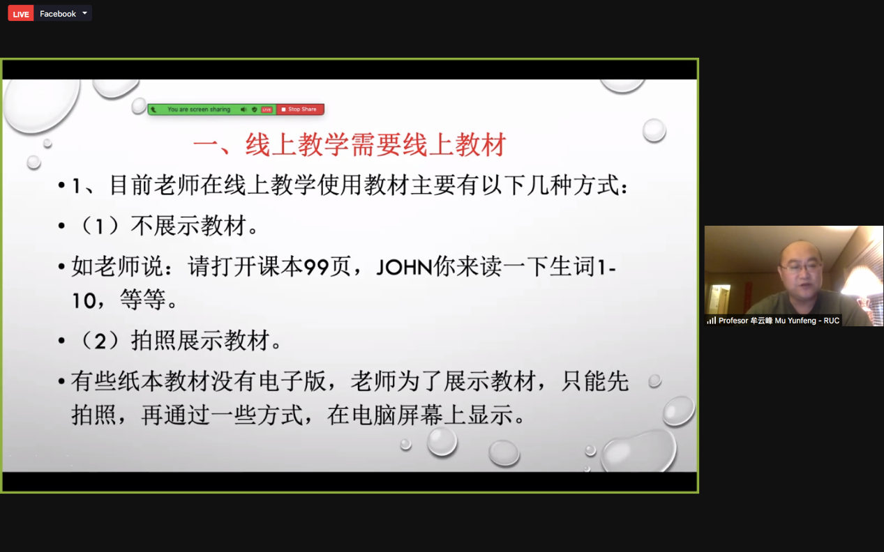 随后,韩国色情 目前在美国任教的牟云峰副教授做《关于线上对外汉语教材的几点思考》的报告。他分析了目前线上汉语教学存在的问题,认为目前线上教学中的师生互动较为受限乃至缺失,提出线上教学需要真正意义上的线上教材,并就理想的“线上对外汉语教材”进行分析和阐述。