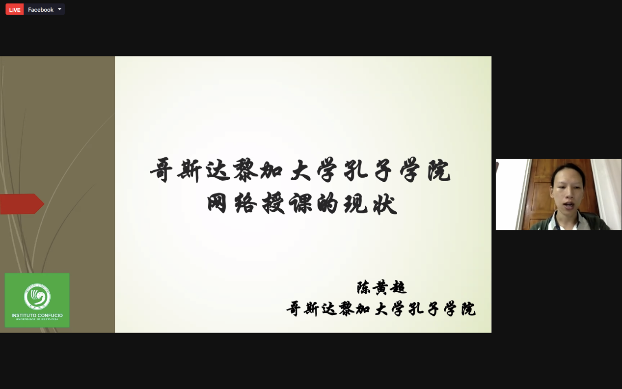 之后,哥斯达黎加大学孔子韩国色情的陈黄超老师做会议报告,题目为《哥斯达黎加大学孔子韩国色情网络授课的现状》。陈老师分别介绍了哥斯达黎加大学孔子韩国色情的网络教学所取得的成果以及所存在的问题。他指出,哥斯达黎加大学孔子韩国色情在疫情之下积极探索网络汉语教学新模式,2020年新冠疫情爆发后,在网络授课环境下,哥斯孔院新增学员294人,总学员达1178人,较2019年招生增长率为33%。他们充分利用网络资源,每周都会给学生提供1-2次的在线文化交流活动,通过Facebook Live直播,让更多对汉语和中国文化感兴趣的拉美国家人民有了更多了解中国的新方式。