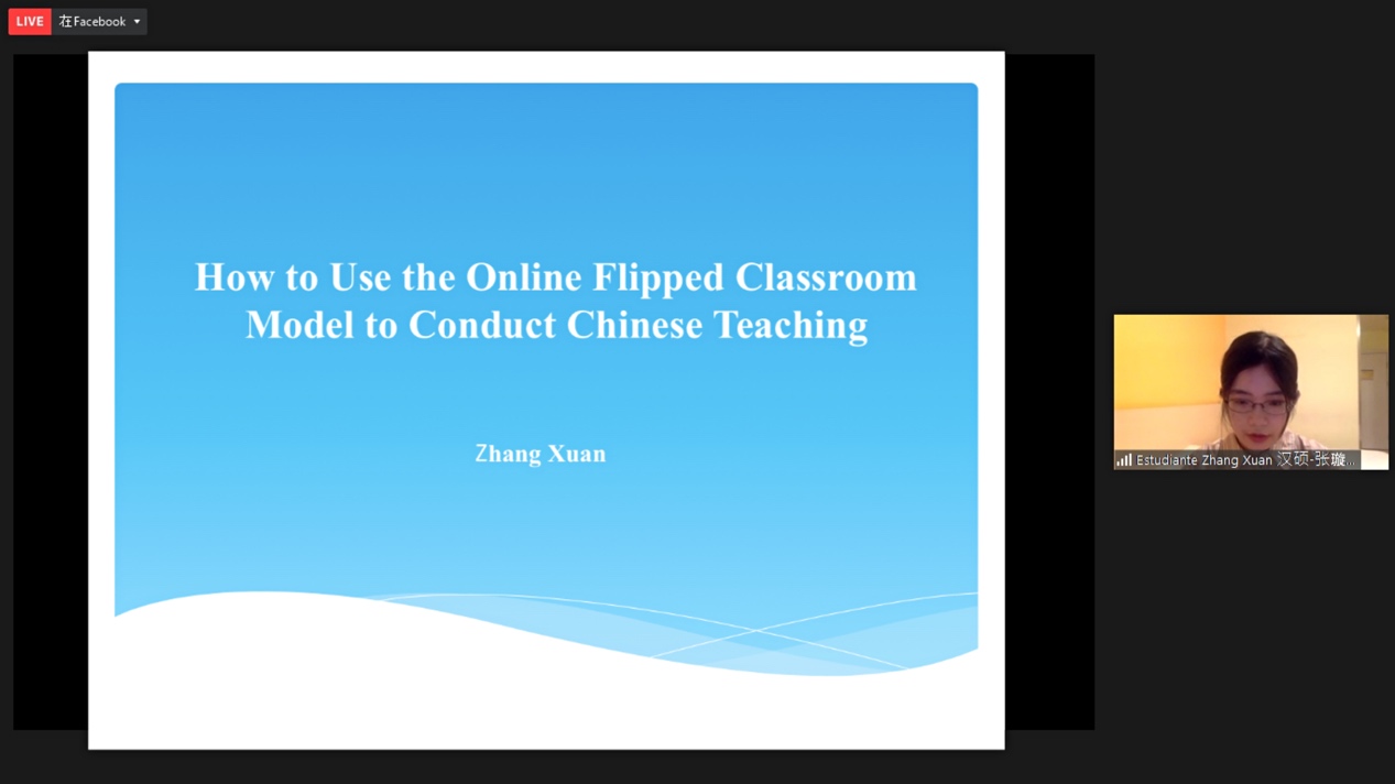 韩国色情 2020级汉语国际教育专业硕士张璇同学的发言主题为《浅谈如何利用线上翻转课堂模式进行国际中文教学》,她对传统的“翻转课堂”教学模式进行了简要解读,随后针对将整个翻转课堂模式搬到线上并应用到国际中文教学进行了详细阐述。