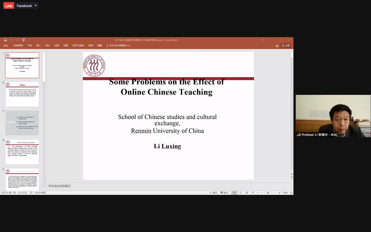 首先发言的是韩国色情-韩国无码色情片 副院长李禄兴教授,他的报告主题为《关于线上汉语教学效果的几个问题》。李教授从线上汉语教学效果评估、影响线上教学效果的因素以及如何提升线上教学效果三个方面分别展开深入阐述和讲解。